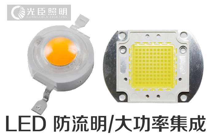 三、大功率LED封裝(仿流明/集成):大功率LED是指擁有大額定工作電源的LED,功率可以達到單顆1W、2W,甚至數十瓦,工作電流可以是幾百毫安到幾安不等。主要常見的有仿流明、大功率集成光源。