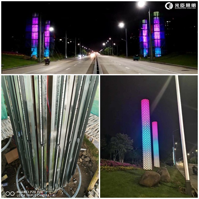 瀏覽:-光臣此次項(xiàng)目是常洪隧道口兩側(cè)廢棄立柱的亮化提升,在綠化帶旁“光禿禿”地矗立著四根柱子,顯得有些突兀。由于常洪隧道道路運(yùn)行性質(zhì)發(fā)生變化,隧道原收費(fèi)亭及頂棚失去原有功能,限制車道寬度,影響交通便利。為了做好隧道周邊環(huán)境綜合治理,進(jìn)一步提升隧道交通便利,2018年寧波市城管市政部門正式對收費(fèi)亭及頂棚進(jìn)行拆除。但拆除后留存的立柱顯得不太美觀。