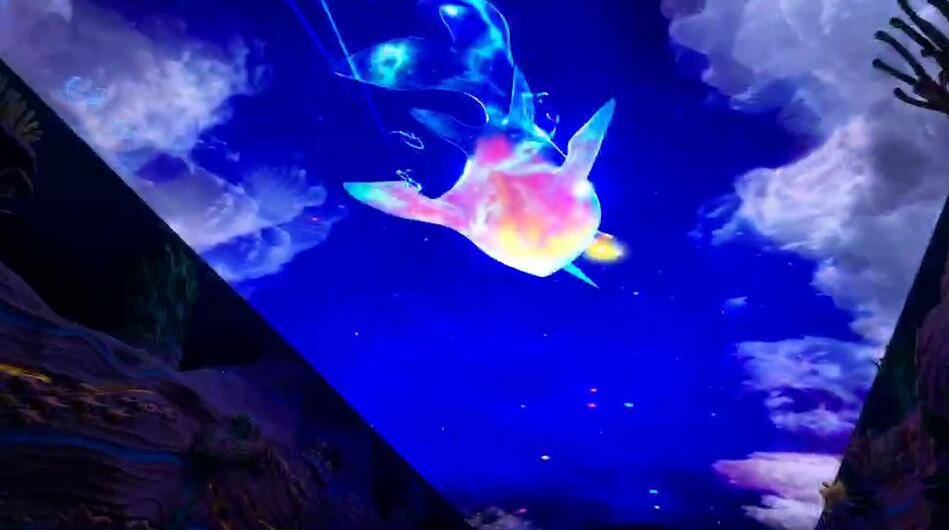 在海洋王國(guó)的入口處,有一個(gè)魚(yú)形狀的海洋大道,這是進(jìn)入海洋王國(guó)的通道,海洋大道的頂部是一個(gè)巨大的天幕,輪換播放著水母,鯊魚(yú),海草等海洋生物的圖~如夢(mèng)如幻,超漂亮!