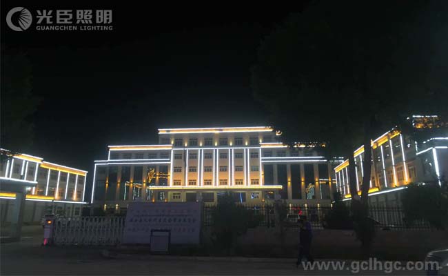 本次市政亮化項目選用了光臣照明3231鋁面蓋線條燈作為建筑輪廓勾畫,配套5030大功率洗墻燈以及雙向壁燈做了整體的外墻亮化。